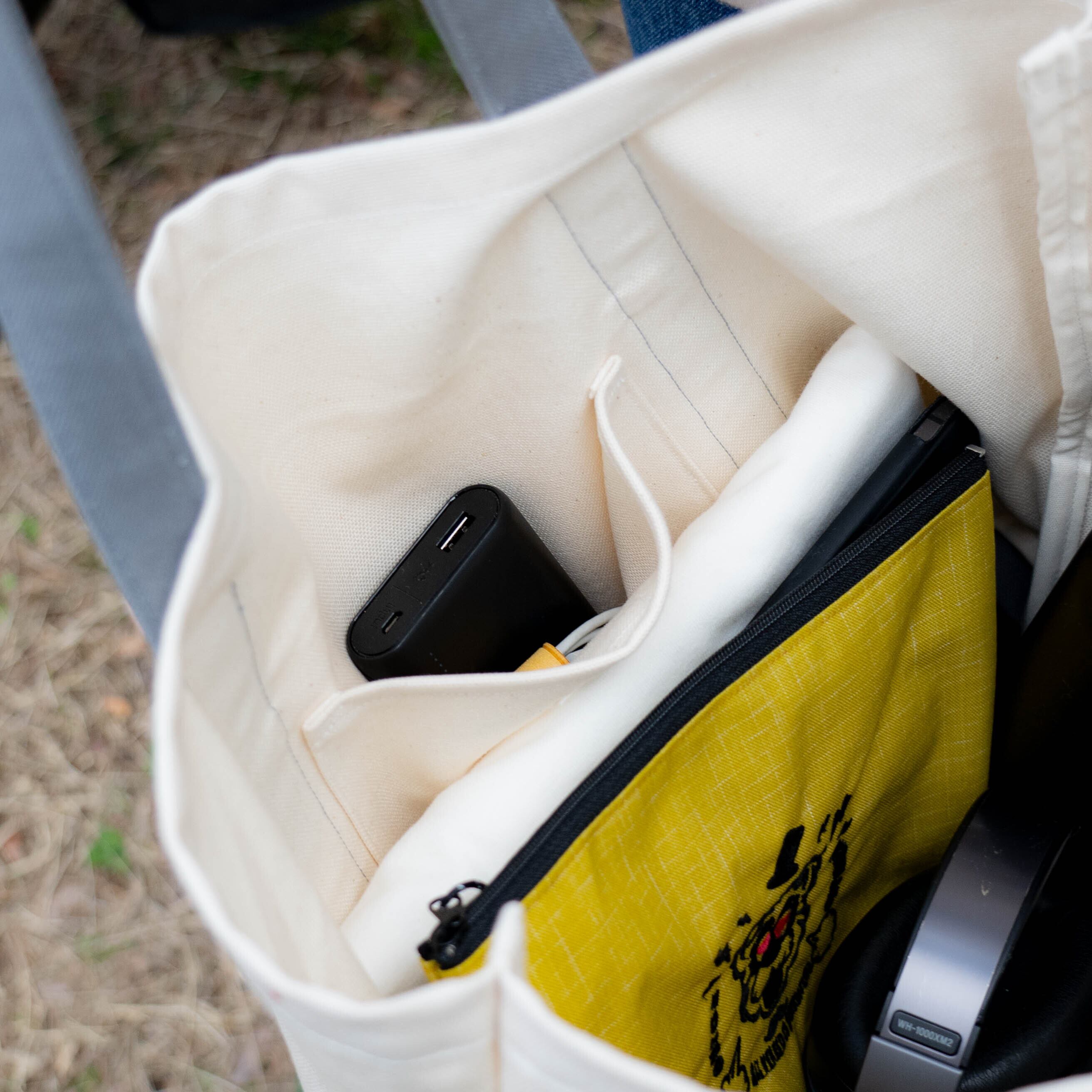 厚手の8号帆布を使っているので丈夫で、たっぷり入るサイズ感がデイリーユースにぴったりです。